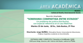 The School of Law, National University of La Plata—in Spanish, Facultad de Ciencias Juridicas y Sociales, Universidad Nacional de La Plata—and La Plata’s Law Society—in Spanish, Colegio de Abogados de La Plata—have invited Dr Núñez to deliver a joint presentation about his research on the “Egalitarian Shared Sovereignty as a new mode of governance: the Falklands Case.” The presentation will take place on Tuesday 23rd June from 6pm in Buenos Aires capital, the city of La Plata.