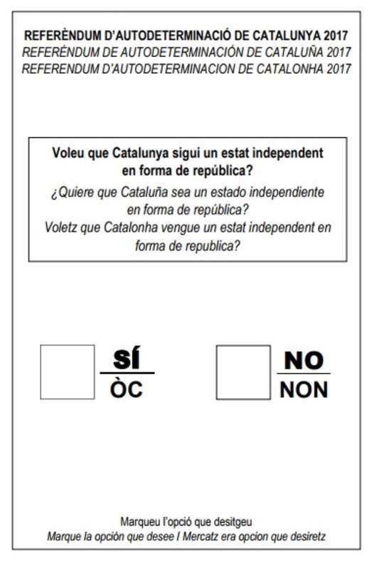 “Do you want Catalonia to be an independent state in the form of a republic? Yes/No.”