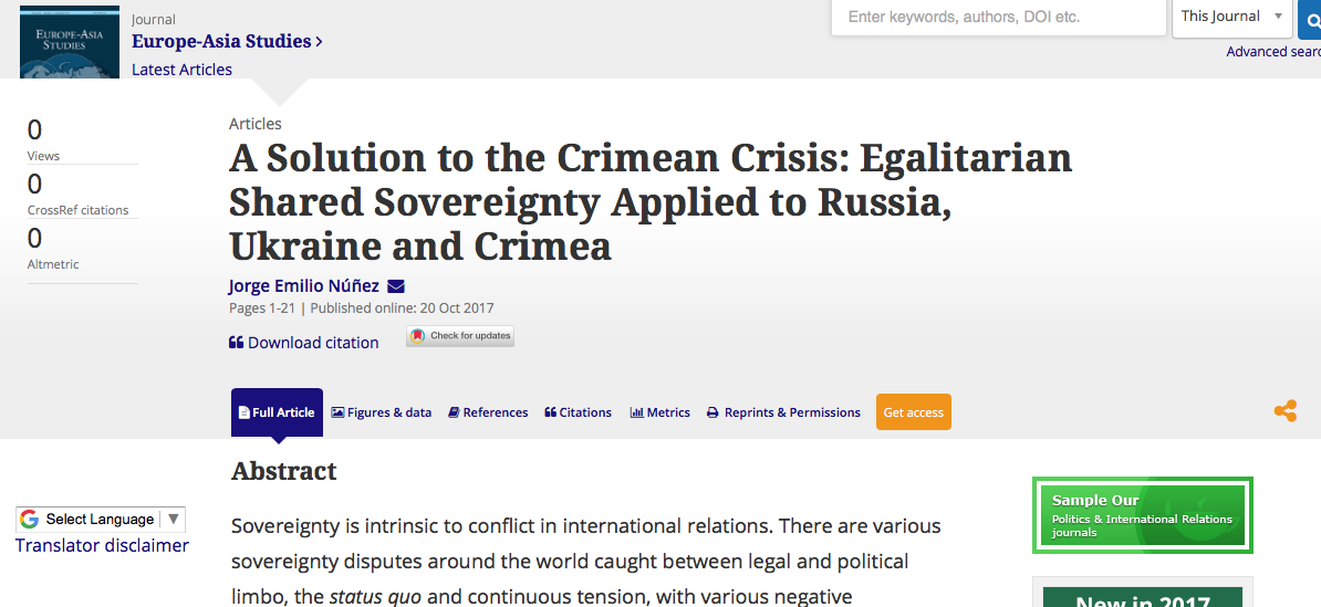 A Solution to the Crimean Crisis: Egalitarian Shared Sovereignty Applied to Russia, Ukraine and Crimea