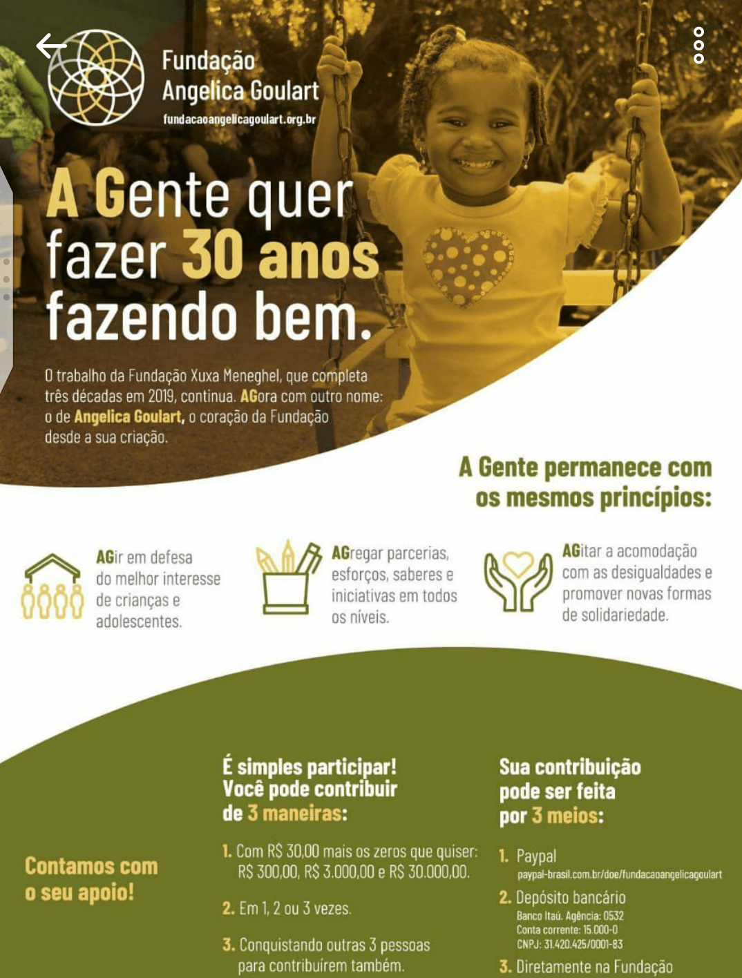 Participate in the campaign and help the Fundação Angelica Goulart continue to provide opportunities for children, teenagers and young people.