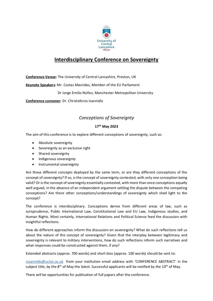 27th Apr 202327th Apr 2023 Dr Jorge E. Núñez Interdisciplinary Conference on Sovereignty [17/May/2023] Wednesday 27th April 2023 Dr Jorge Emilio Núñez Twitter: @DrJorge_World https://drjorge.world Share this: Share on X (Opens in new window) X Share on Facebook (Opens in new window) Facebook Like Loading... Related