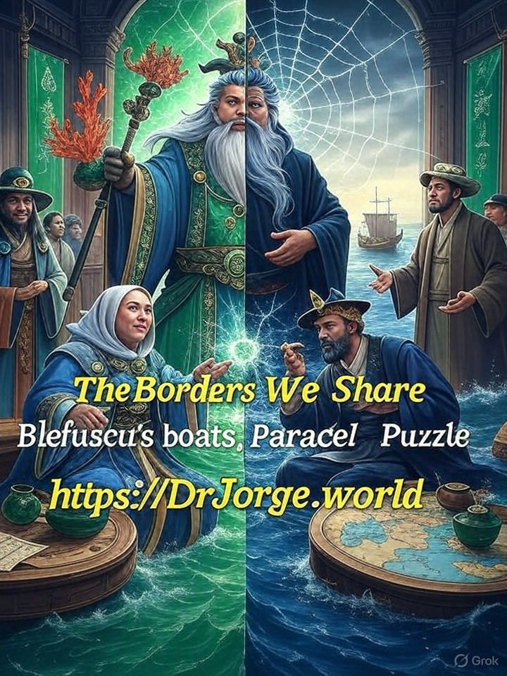 The sea roared with a restless fury, its waves lashing against the rocky shores of Blefuscu, where the horizon shimmered with the floating enigma of Laputa, a realm aloft in the clouds yet tethered to the waters below. A grand hall emerged from the mist, its jade-green banners rippling like the scales of a dragon, its interior aglow with lanterns casting a spectral light across a map woven from threads of mist and tide. This was no ordinary assembly—it was a crucible where Blefuscu’s boats challenged Laputa’s dominion, their strife a mirror to the real-world contest between Vietnam and China over the Paracel Islands, a contested jewel in the South China Sea. Dr. Jorge Emilio Núñez stepped into this ethereal space, his holographic map unfurling like a living tapestry, its pulses weaving a story of multidimensional magic to bind these warring waters—and ours. The air thrummed with the creak of ships, the whispers of ancient voyages, and the weight of modern claims, a saga where the sea held the promise of unity or ruin.