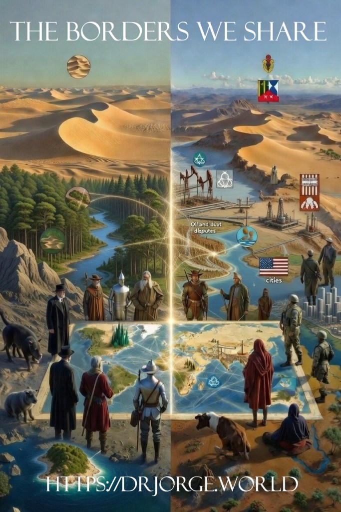 The journey is not finished. Section 8: Rivers and Flows (Posts 43–48) begin soon. We will follow water—life’s most intimate border—through Sherwood’s streams and the Nile, Laputa’s falls and the Mekong, Utopia’s banks and the Indus, Ruritania’s tides and the Danube, Narnia’s run and the Euphrates, and Cimmeria’s flood and the Amur. Rivers do not respect lines drawn on maps; they carve new paths, carry memory, sustain life. They remind us that borders are not fixed—they flow, they bend, they can be shared.Until then, the ground beneath us is still listening.