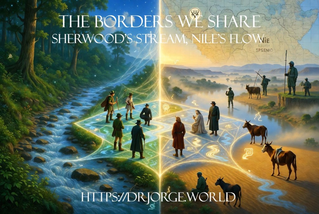 The water sings a song older than borders. Two rivers flow through two worlds, their currents carrying both life and memory. One is Sherwood’s Stream, the clear, swift river that winds through the green heart of Robin Hood’s forest—a living artery that feeds the ancient oaks, quenches the outlaws’ thirst, and carries whispers of justice from the heart of the wood to the wider world. The other is the mighty Nile, the longest river on earth, whose waters have sustained civilizations for millennia. From the Ethiopian highlands through Sudan and into Egypt, the Nile is the green lifeline that turns desert into farmland, yet today its flow is contested between upstream Ethiopia (with the Grand Ethiopian Renaissance Dam) and downstream Egypt, which sees the river as its existential artery. Sudan stands in the middle, caught between the two.