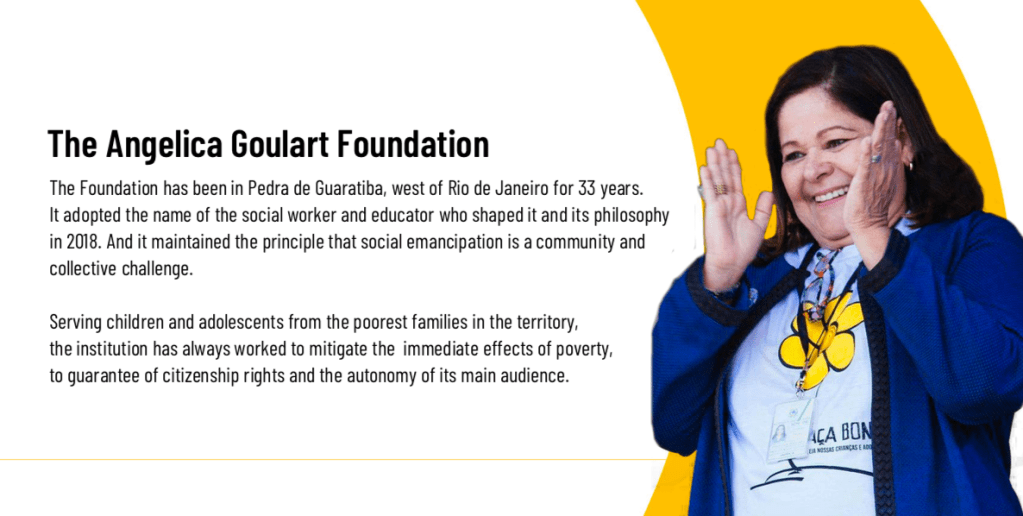 The newly named Foundation follows the same original principles: to act in the best interest of children, teenagers and young people, to promote solidarity, to embrace partnerships, efforts, knowledge and initiatives. In addition to the Foundation’s history, we have a solid reason to honor Angelica Goulart’s legacy.